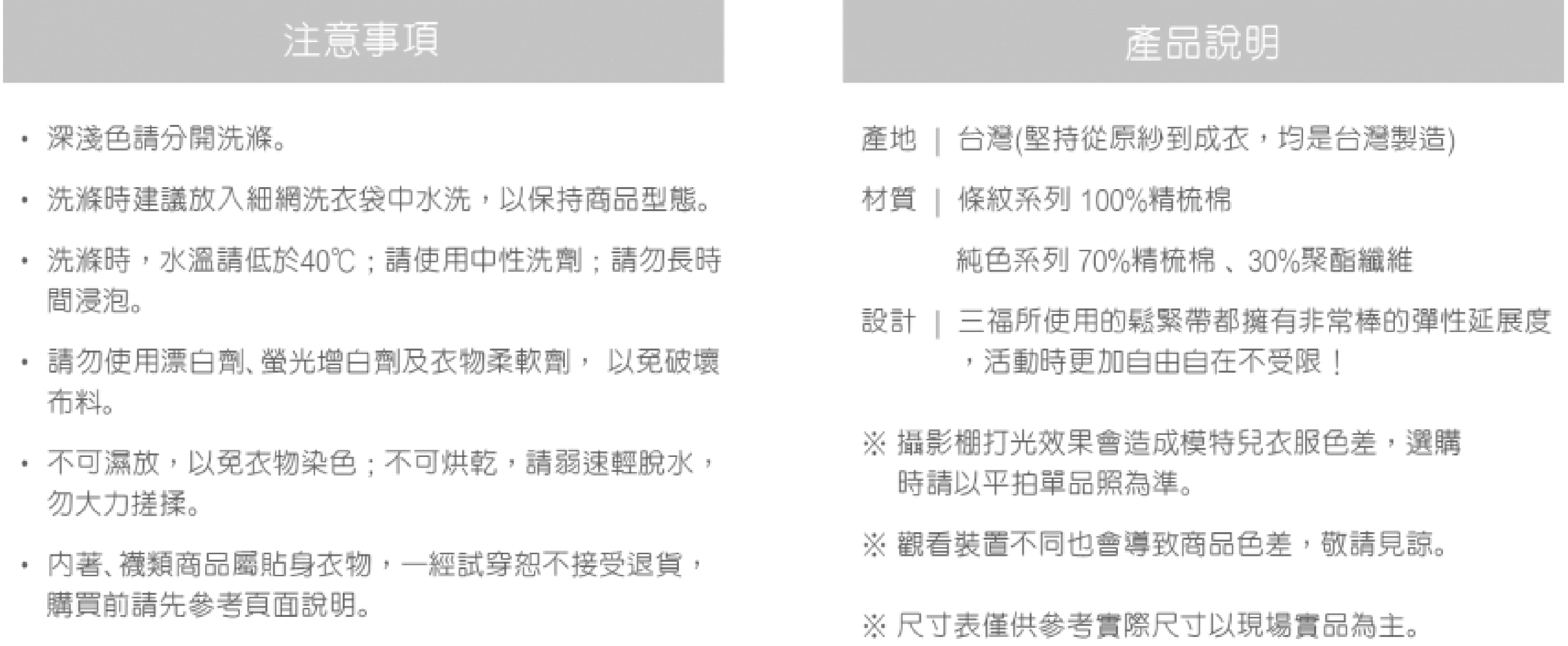 材質選用70%精梳棉(台灣知名大廠棉紗)+30%彈性纖維混紡製成.